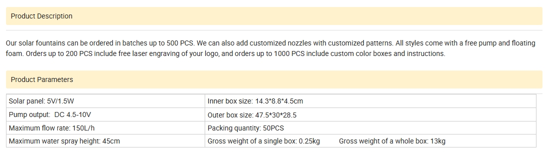 Fountaine solaire populaire 1,5 W Square à rechange Square Split Fountain Outdoor Courtyard Rockery Water Landscaping