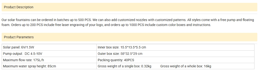 Modifier l'usine Direct Alimentation Solar Water Pompaine Fountain, Pool Fountain, Rockery Fountain, Fish Tank Water Circulation